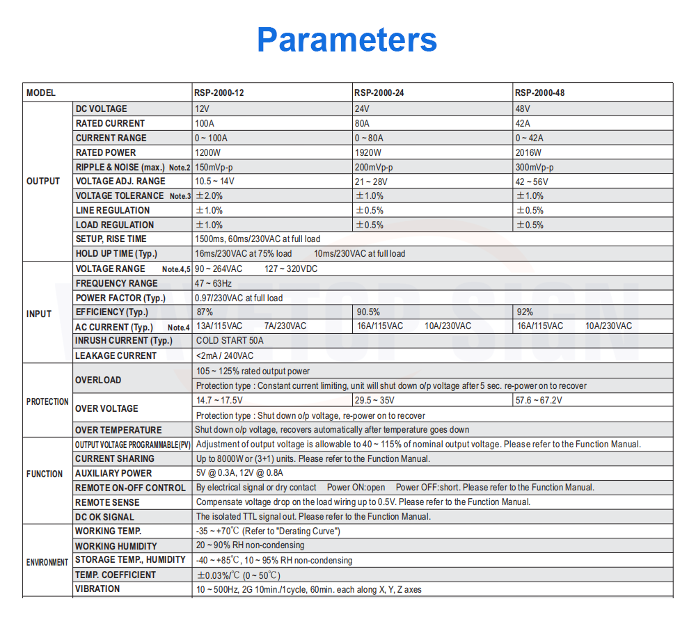 * Built-in remote ON-OFF control / remote sense / auxiliary power DC OK signal / OTP alarm signal