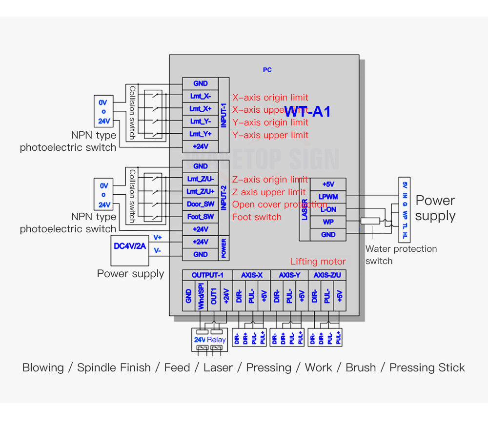 6. Support 1 lasers’ control, adjustable output voltage of laser control: 0~5V,adjustable PWM output: 0~100k, adjustable duty cycle: 0~100%;