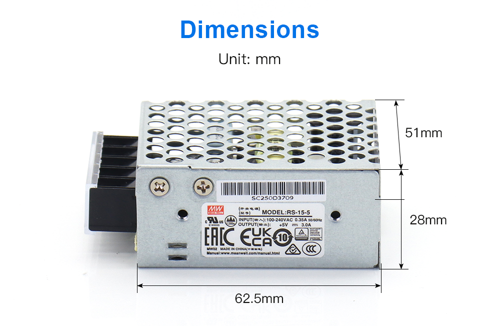 WaveTopSign 15W Original MeanWell RS-15-5 Switch Power Supply