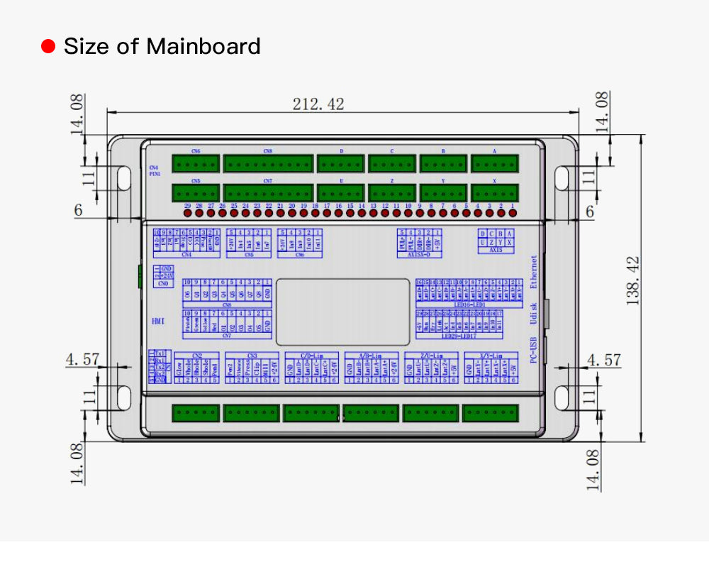 2. The controller has a step / servo driver control interface for up to 8 axes, with 16 limit inputs, 16 dedicated / universal inputs, and 28 general outputs. It also has USB2.0 and 10 / 100M network communication and U disk file copy function. It can work in online and offline mode, while reserved external expansion device interconnection communication interface.